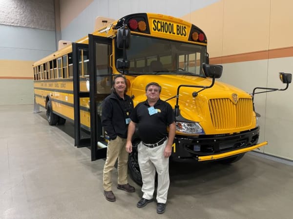Hoglund School Bus Company sales representatives Mark Steel and Danny Thede.