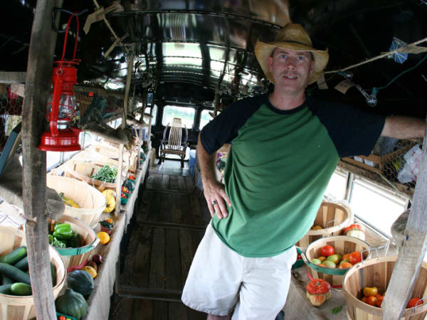 Military veteran Mark Lilly turned this 1987 school bus into a farmers market on wheels. His Farm to Family operation distributes locally grown food to families in urban areas and educates people about food security.