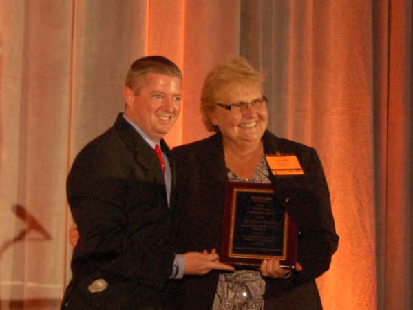 Pupil transporters were honored during the annual NAPT awards banquet. Cathy Snow of Elk Grove (Calif.) Unified School District received the Heroism Award sponsored by Blue Bird Corp.