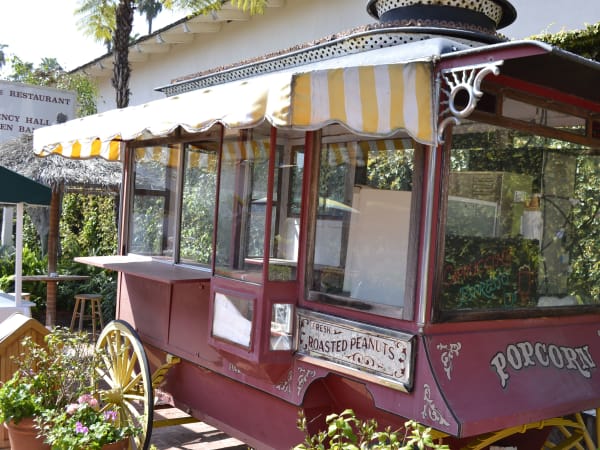 The resort grounds also feature vintage "decor," like this popcorn/roasted peanuts cart.