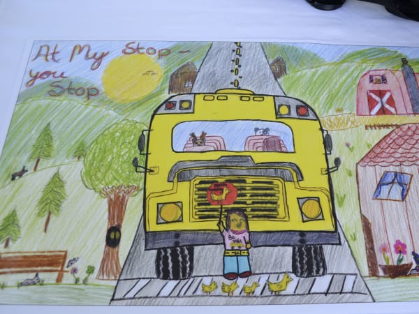 The winning entry in the 2013 CASTO poster contest was submitted by eighth-grader Marissa Alger of Guerneville, Calif. Alger's poster will also be submitted for this year's National School Bus Safety Week Poster Contest, which has the same theme: "At My Stop — You Stop."
