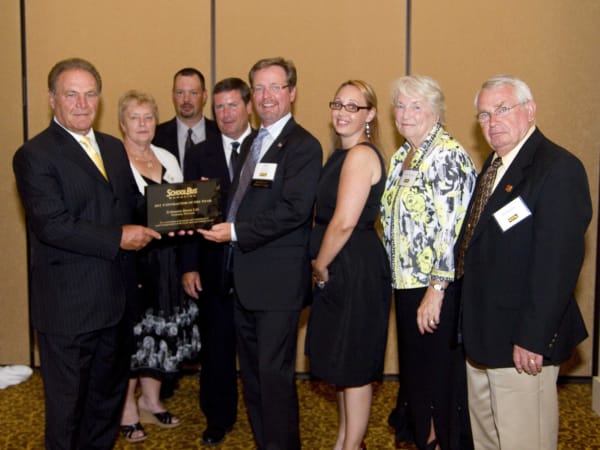 2012: Wisconsin school bus operator Kobussen Buses Ltd. was named SBF's 45th Contractor of the Year. Members of the Kobussen family are pictured with SBF Publisher Frank Di Giacomo (far left). The company has been transporting students for Kaukauna (Wis.) Area School District for nearly 75 years, and the family is known for lending a hand to colleagues. To read about Kobussen Buses, click here. To view more photos from the company's operation, go here.