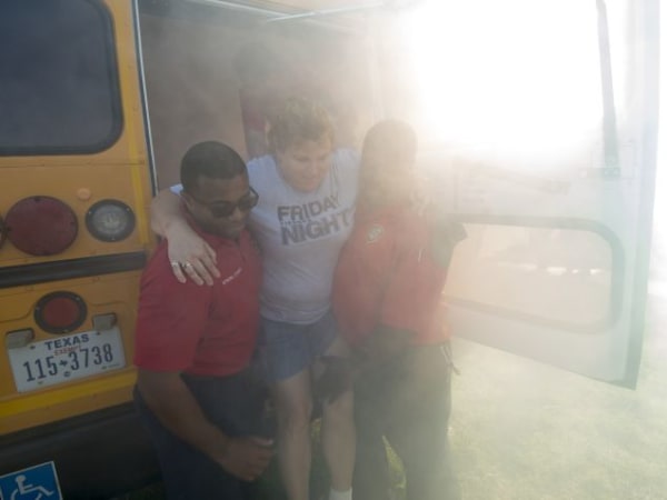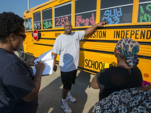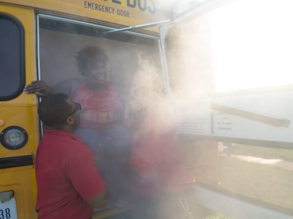 More than 1,100 bus drivers and attendants at Houston Independent School District took part in a back-to-school training program called “Safety Expo.” Hands-on activities included evacuating a school bus on fire (as simulated by a smoke machine).