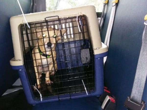 A four-legged passenger is ready to ride to a pet-friendly storm shelter on a St. Lucie school bus.