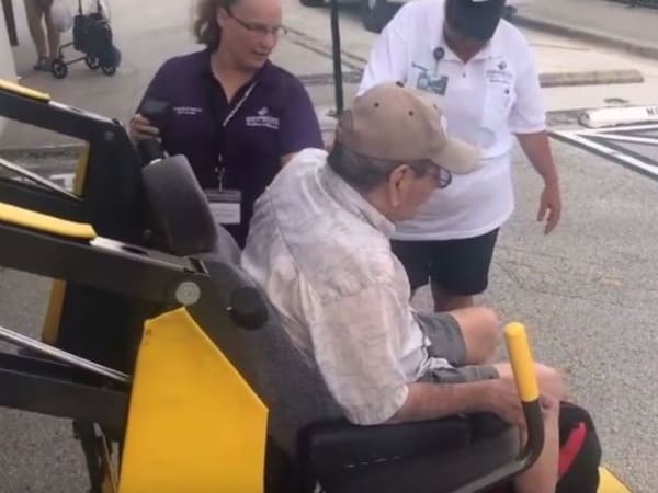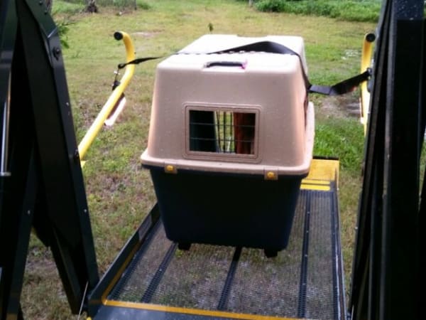 The wheelchair lift was used to bring pets in kennels aboard the “yellow ark,” as St. Lucie Director of Transportation Don Carter described it.