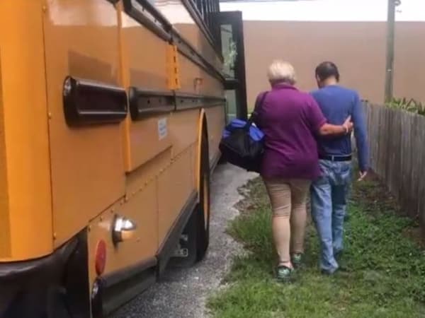 A Hillsborough school bus driver helps a resident board a bus to evacuate before Hurricane Irma.