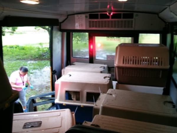 St. Lucie Public Schools’ buses transported people as well as pets (seen here in kennels) to storm shelters.
