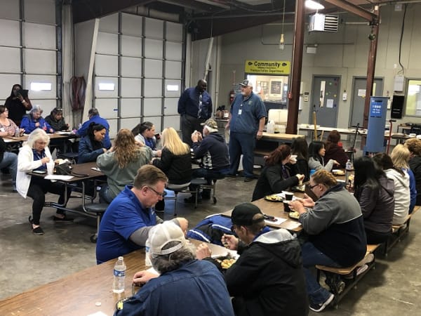 Community Independent School District in Texas hosted a special Love the Bus breakfast for its transportation staff on Feb. 13. Superintendent Roosevelt Nivens (top left) handed out certificates honoring staff members for their dedication and service to pupil transportation.