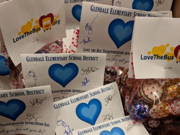 Glendale (Ariz.) Elementary School District #40 kicked off its Love the Bus festivities on Feb. 13 with something sweet: chocolates from the superintendent and assistant superintendent to all transportation department employees.