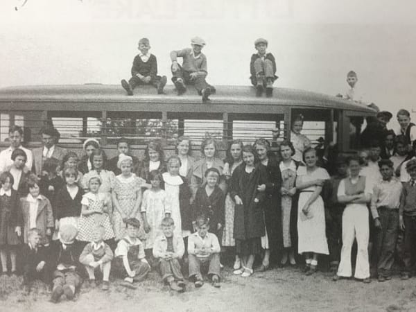 This 1930s photo shows a bus and students from Little Lake, Michigan. Douglas Zimmerman, transportation director at Gwinn (Mich.) Area Community Schools, submitted the shot, which is from the archives of the Forsyth Township Historical Society.