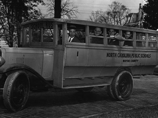 This wooden-body school bus was used to transport pupils in Wayne County, North Carolina, in the 1920s and ’30s. This photo was also sent by Graham.