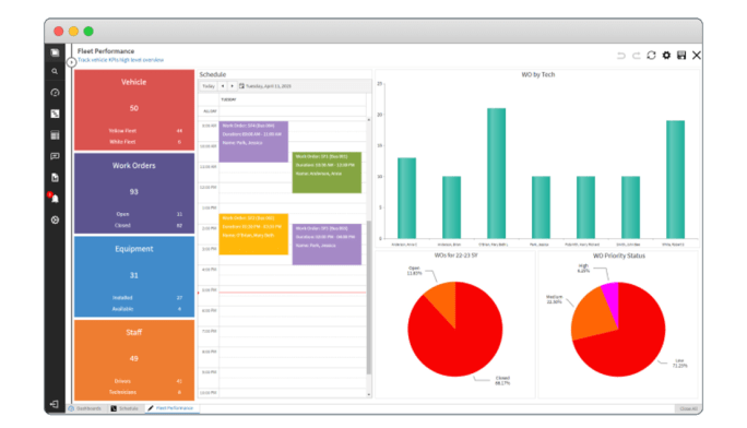 Servicefinder allows for tailored reporting, such as technician reports and vehicle cost reports, to meet an organization’s needs. Servicefinder also enables users to complete digital vehicle inspections. It is a centralized platform to manage repairs and warranties, providing real-time cost tracking for better budgeting and forecasting, and access to historical data. Servicefinder assists with planning and scheduling maintenance, providing reminders, and calendar views so nothing falls through the cracks. The system also makes it easy to know exactly what parts a shop has on hand, where to find them, and the cost of parts coming and going. All this with an easy-to-read dashboard that provides insights into key performance indicators, real-time data visualization and a simple way to track maintenance tasks and progress.