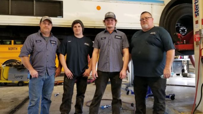 Mechanics working at Person County (N.C.) Schools include, from left to right: Jason Branscome, Adam Martin, T.J. Harris, and Phil Rowland.