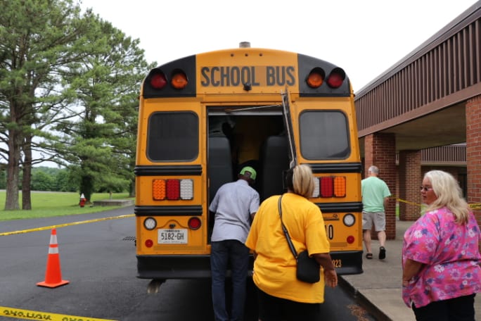 Law enforcement and other experts take participants through securing the bus and protecting students on board