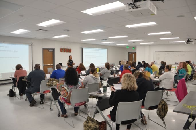 Susan Bernstein, a transportation supervisor for Henrico County Public Schools in Virginia, attended an in-person securement training session.