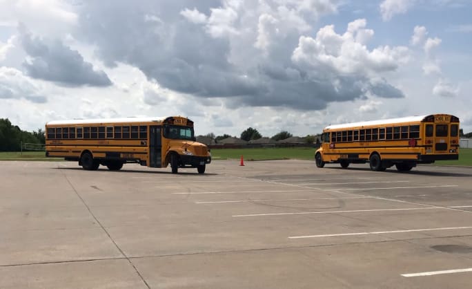 Through Texas’ Region 10 ESC, Huecker held 14 trainings in June and another 14 this past July. Over those two months, 1,062 drivers received certification. A 20-hour course includes four hours of laboratory activities consisting of driving a school bus in a parking lot and demonstrating safety skills. One of those skills is a mock railroad crossing, whereby drivers must use proper procedures when crossing. A mock student pick up/drop off, diminishing lane, off-set backing, and serpentine, complete the required skills during the lab.