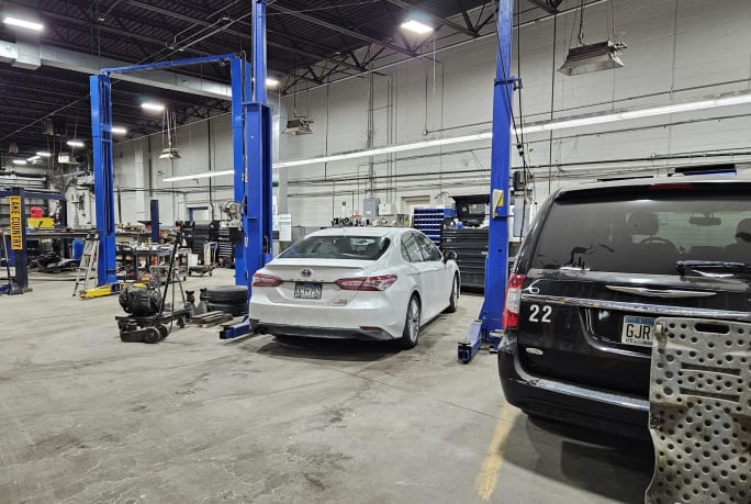 Passenger vans are becoming much more common in school transportation. Here, Lake Country Transportation in Minnesota lines some of its smaller-capacity vehicles up for service in its bus garage.
