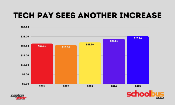 Is the driver shortage easing? Are maintenance costs stabilizing? How is tech pay tracking? School Bus Fleet’s 2025 survey reveals the latest trends in school bus maintenance as operators spoke out about what’s happening in and out of their shop for the 2024-25 school year.
