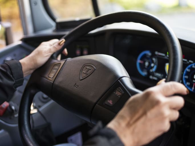 The IC Bus CE Series features steering wheel controls that allow the driver to keep better control during passenger loading and unloading.
