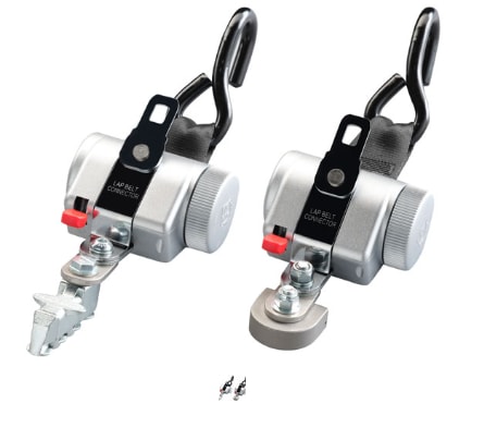 These systems help secure wheelchairs aboard special-needs school buses. The Protektor PlatinumSeries by AMF Bruns provides a 4-point safety system with retractors attached to the bus floor.