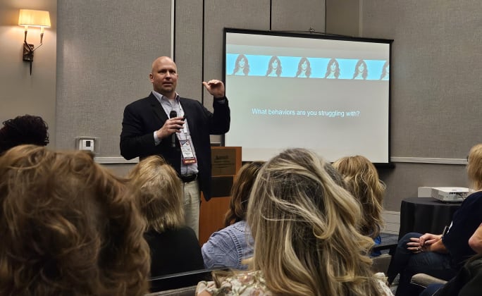 Patrick Mulick, a board-certified behavior analyst, coach, consultant, and director of student engagement at Auburn School District in Washington, presented a session on student behavior at the 2025 California state association conference.