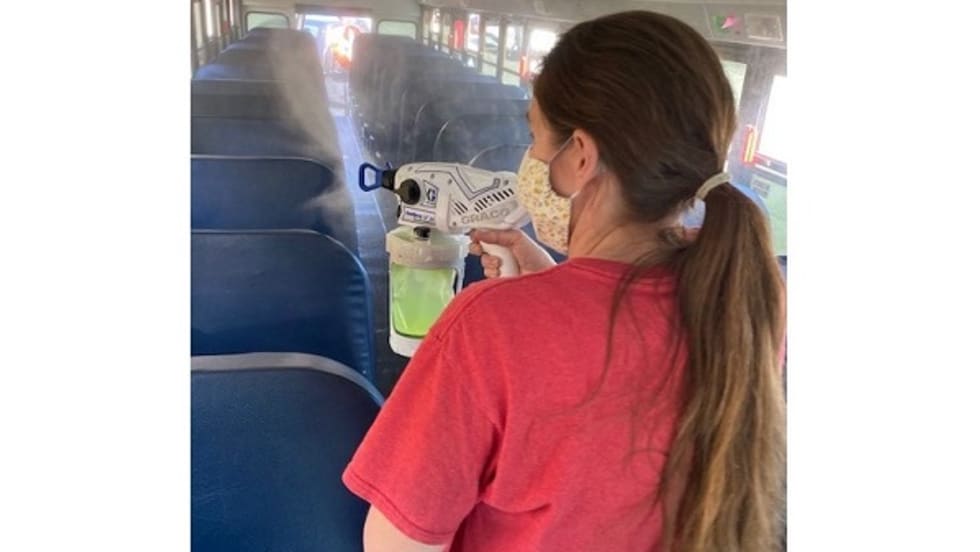 Hall County Schools is employing a three-step process to clean and disinfect its buses with products from Zep Corp.