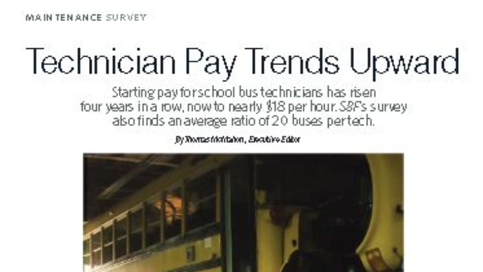 This survey is sent to managers and technicians at school district transportation departments and contractors. Survey topics include bus-to-technician ratio, fleet age, technician pay, parts purchasing and training sources.