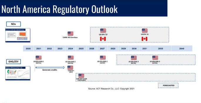 In comparison, for Class 8 tractors, the TCO will favor diesel over electric until those NOx regulations kick in.
