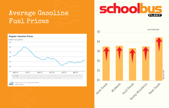 The price of gasoline rose about 7 cents more on average, while diesel saw a slight overall increase of nearly 2 cents nationwide as the cost seemed to start leveling off for school bus fleets across the country.