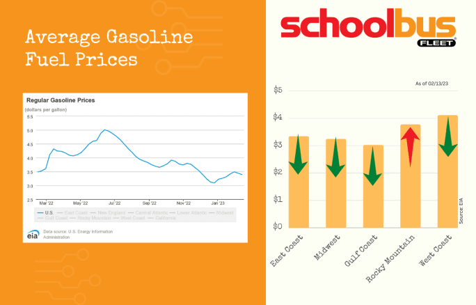 The average cost of diesel and gasoline fell again in the past week, but gas saw a 7 cent bump upward in the Rocky Mountain region. Overall, this should be helpful for school transportation fleet maintenance teams.