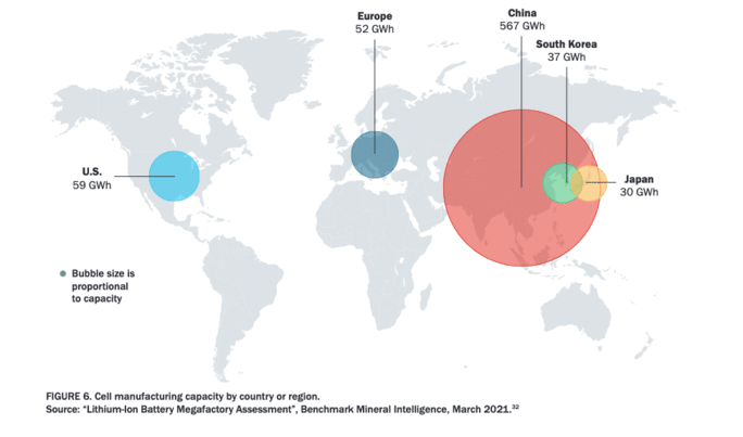The U.S. has less than a 10% global market share for manufacturing capacity across all major battery components and cell fabrication.