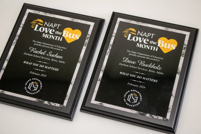 The Idaho Department of Education awarded two Durham School Services team members with the Love the Bus Award for their efforts above and beyond the call of duty in serving their student passengers in Boise School District.