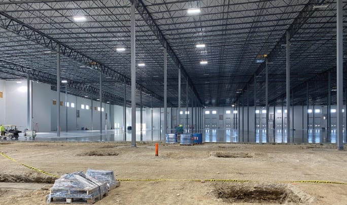 Construction is underway inside Lion Electrifc's new Illinois production facility, which will manufacture electric school buses.