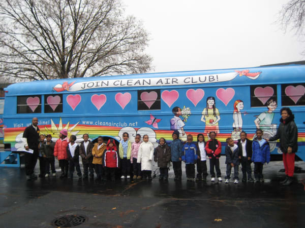 Inside the Clean Air Club bus are four interactive exhibits that explain how biodiesel is made and how it helps the environment and students’ health.