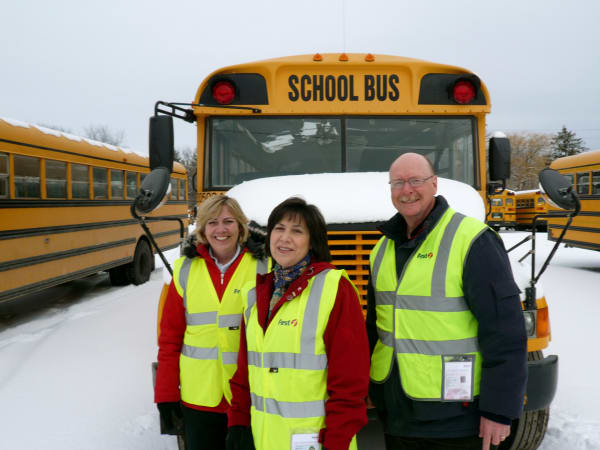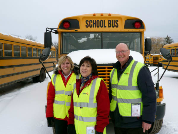 Each driver must pass more than 50 hours of classroom and behind-the-wheel training before transporting students. Team members like Shelley DeMarchi (left), Lisabeth Gebauer and Garry Canning are well-versed in inclement weather operations.