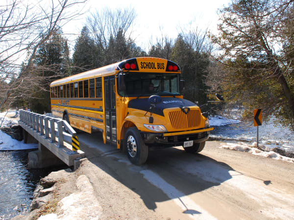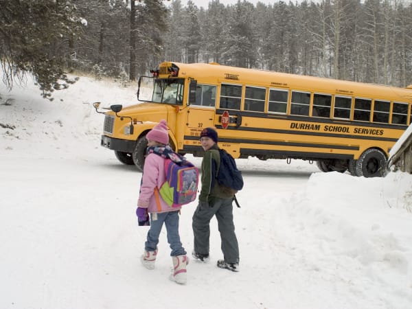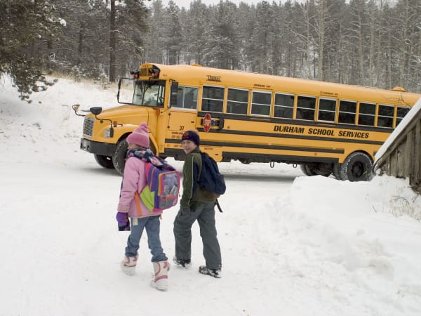 Durham and Stock Transportation operate more than 17,000 school buses combined. This unit is en route in Colorado.