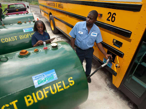 From California to Florida, STI provides alternative fuel solutions to its customers. Pictured is a driver filling up with biofuels.