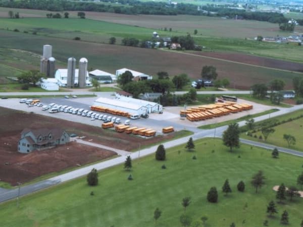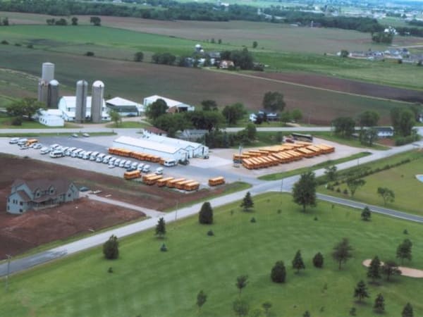 This aerial shot shows the Kobussen Buses terminal in Neenah, Wis. The contractor provides transportation services for 12 school districts in Wisconsin.