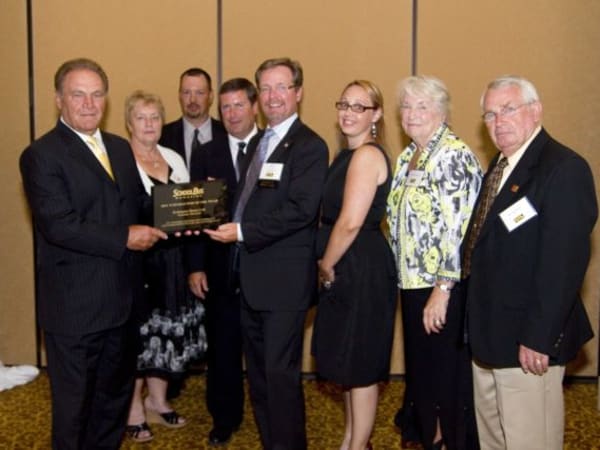From left: SBF’s Frank Di Giacomo with members of the Kobussen family: Ann, Scott, Joe, Dan, Melissa (Miller), Marion and Jim Kobussen.