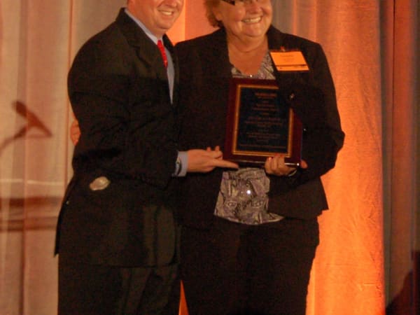 Pupil transporters were honored during the annual NAPT awards banquet. Cathy Snow of Elk Grove (Calif.) Unified School District received the Heroism Award sponsored by Blue Bird Corp.