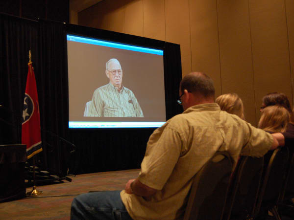 One presentation took a hard look at a tragic school bus accident. The family of Hunter Pitt, who was killed when his school bus ran over him, watches a safety video they worked on with Missouri organizations. On screen is the driver of the bus that ran over Hunter, Willie Leonberger.