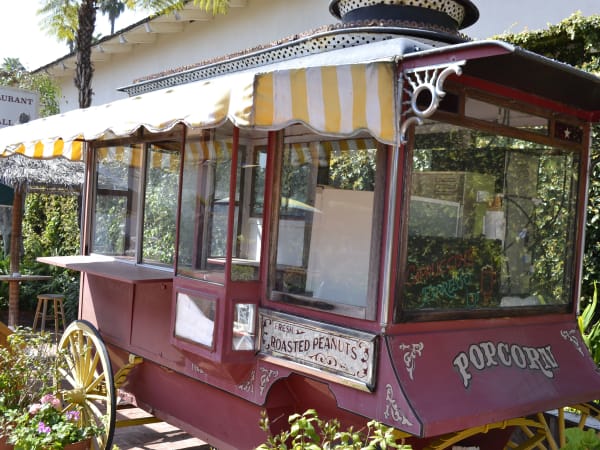 The resort grounds also feature vintage "decor," like this popcorn/roasted peanuts cart.