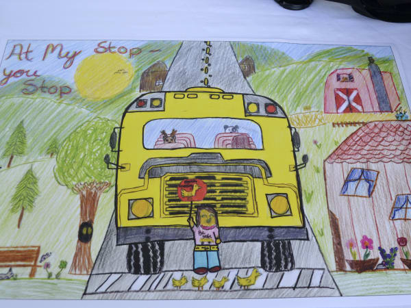 The winning entry in the 2013 CASTO poster contest was submitted by eighth-grader Marissa Alger of Guerneville, Calif. Alger's poster will also be submitted for this year's National School Bus Safety Week Poster Contest, which has the same theme: "At My Stop — You Stop."