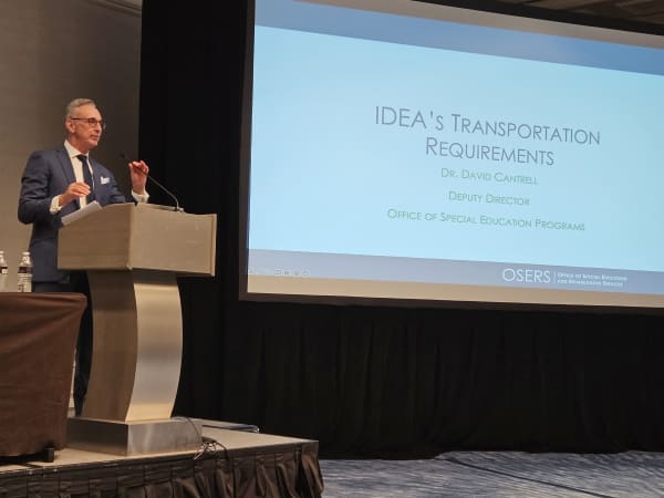 David Cantrell, deputy director of the Office of Special Education Programs (OSEP) at the Department of Education, talked about the implementation of Individuals with Disabilities Education Act (IDEA) at the national level. Cantrell emphasized three pillars to raise the bar, including the need for evidence-based strategies, assistive technology, and specialized transportation.