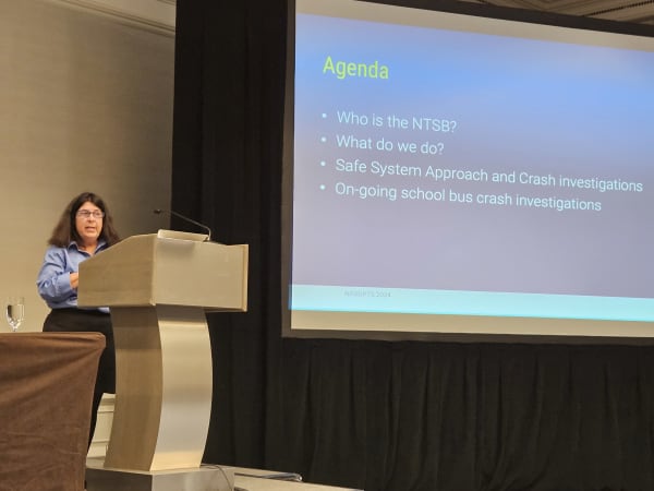 The National Transportation Safety Board (NTSB) shared sobering facts on school bus accidents from recent years. Meg Sweeney, a project manager/accident investigator, discussed the NTSB's safe system approach to investigations, emphasizing pre-crash, crash, and post-crash phases. She covered notable crash details from Rochester, Ind., where three students died; a Baltimore crash involving a 67-year-old driver with a seizure disorder; and a Chattanooga, Tenn., crash where six students died. She shared recommendations that have come out of each crash could prevent future incidents, such as improving road design, passenger loading, fire suppression systems, and driver training and oversight. As she noted, “Compartmentalization only works when the kids are seated properly.” It takes the NTSB about 12 to 24 months to from when an investigation starts to the final report.