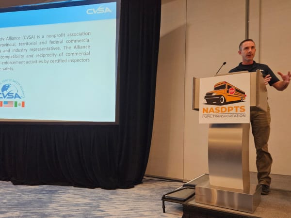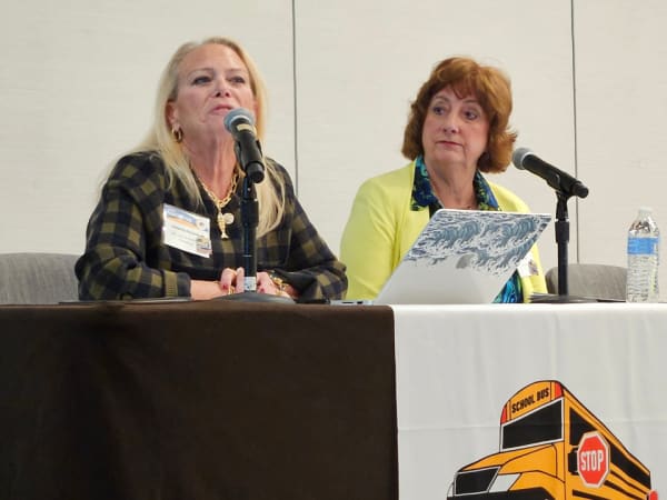 Special needs transportation experts Alex Robinson and Sue Shutrump took the stage to discuss why 2025 and beyond looks a bit different when it comes to transporting students with disabilities. Together, they talked about the rise in autism (now affecting 1 in 31), and the overall increase in students with special needs and IEPs. Robinson reminded attendees to use the least restrictive environment, that students without disabilities can still use a special-needs bus if the route makes sense, to use child-first language, to use the term safety vest instead of harness, and that all students are good even when their behavior is not. Shutrump provided an overview of special-needs rules, equipment, standards, and best practices.