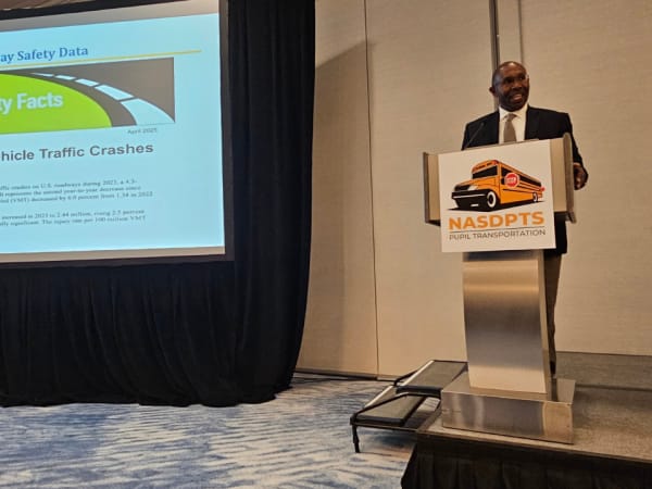 Held Nov. 13-16, 2025, at the Ritz-Carlton Pentagon City in Washington, D.C., over 30 state transportation directors, suppliers, and industry stakeholders gathered in the nation’s capital to learn from each other, hear federal updates from key partner agencies, and mix and mingle, at the National Association of State Directors of Pupil Transportation Services (NASDPTS) event. Top trends discussed through the event were safety, seat belts, crash stats, technology, transporting charter students, alternative transportation, special-needs student support, security measures, and emergency preparedness.
