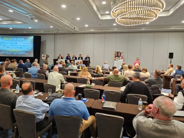 Larry Minor from the Federal Motor Carrier Safety Administration (FMCSA) discussed recent improvements in highway safety, noting an 8% reduction in roadway fatalities over the past year. He summarized recent agency activity and regulations (and de-regulations), including English Language Proficiencies, non-domiciled CDL holder rules, the national registrar program for medical certificates, and drug and alcohol enforcement.