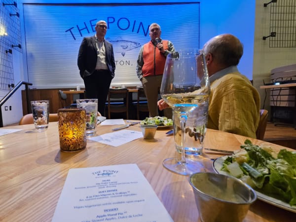 The conference’s first night dinner was held at local seafood restaurant The Point, sponsored by Safe Fleet/Seon. Here, Safe Fleet president Mike Hagan and NASDPTS’ Tyler Bryan welcome attendees.