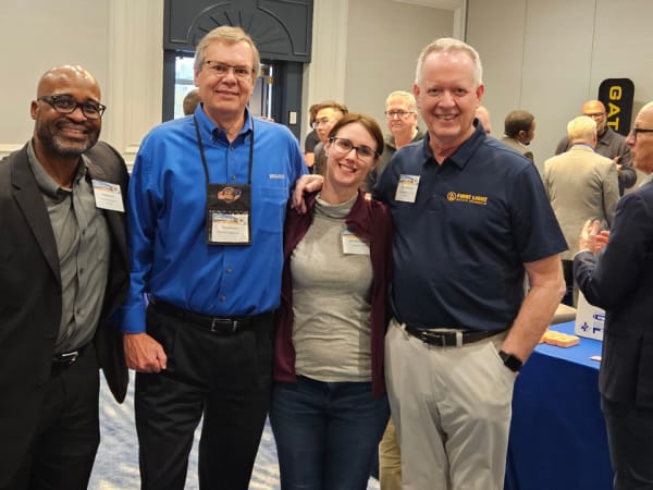 Three of School Bus Fleet’s editorial advisory board members Greg Jackson, Derek Graham, and Max Christensen, stand with editor Amanda Huggett during the supplier showcase.